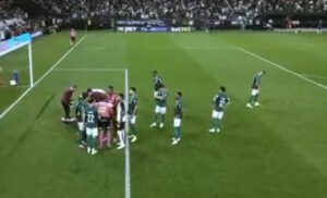 Já na etapa final, após o gol que colocou o Palmeiras em vantagem, Luighi chutou uma bola que estava atrás da meta defendida por Hugo Souza. O objeto acabou atingindo o rosto de um torcedor corintiano, provocando indignação nas arquibancadas e reforçando o clima tenso do confronto.
