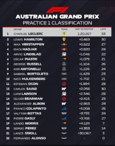 Confira a classificação do TL1 do GP da Austrália