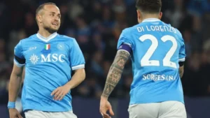 Lobotka encerra jejum de três anos sem fazer um gol e marcou o único tento da vitória do Napoli contra o Sassuolo. Foto: Reprodução/X Lega Itália